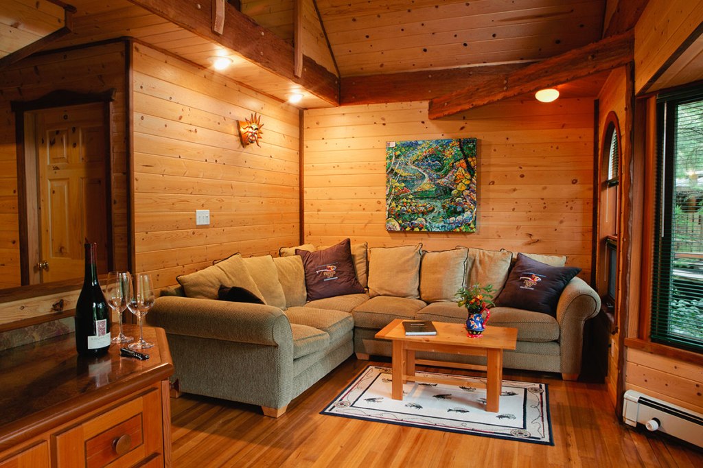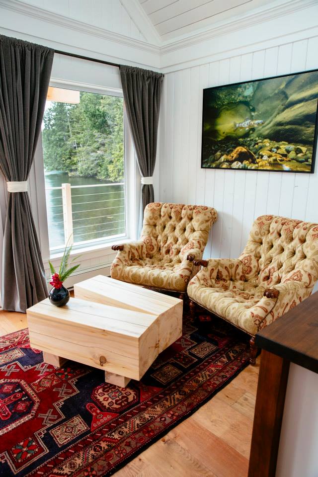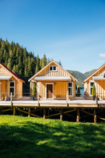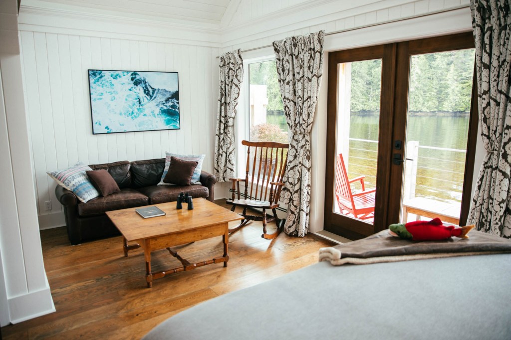Nimmo Bay Resort has nine spacious yet cozy cabins. There are two types of cabins, intertidal and forrest, offering stunning wilderness views in a tranquil setting. The interior of the houses is modernly designed with warm elements and colours, including living area, washroom and bedroom.