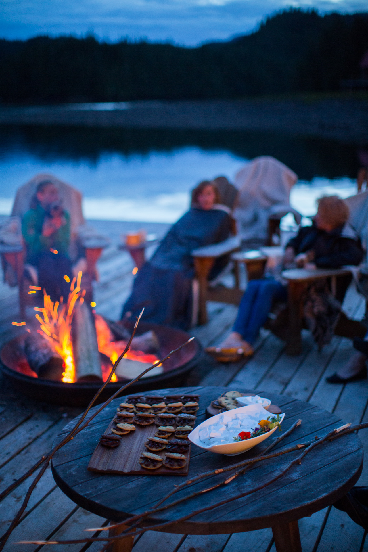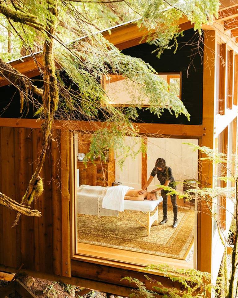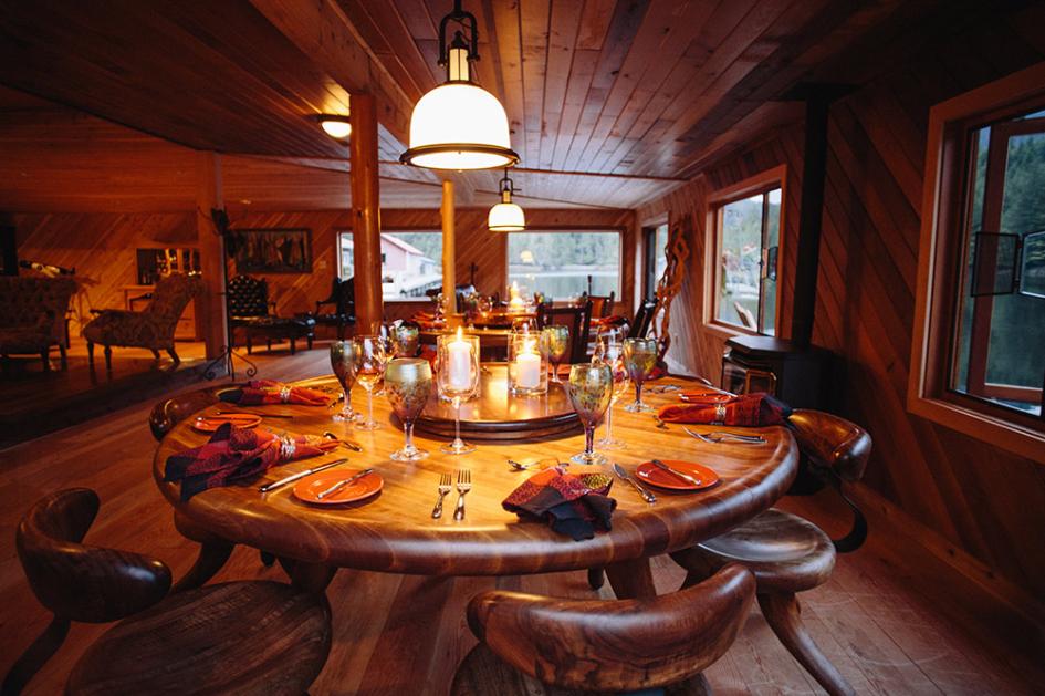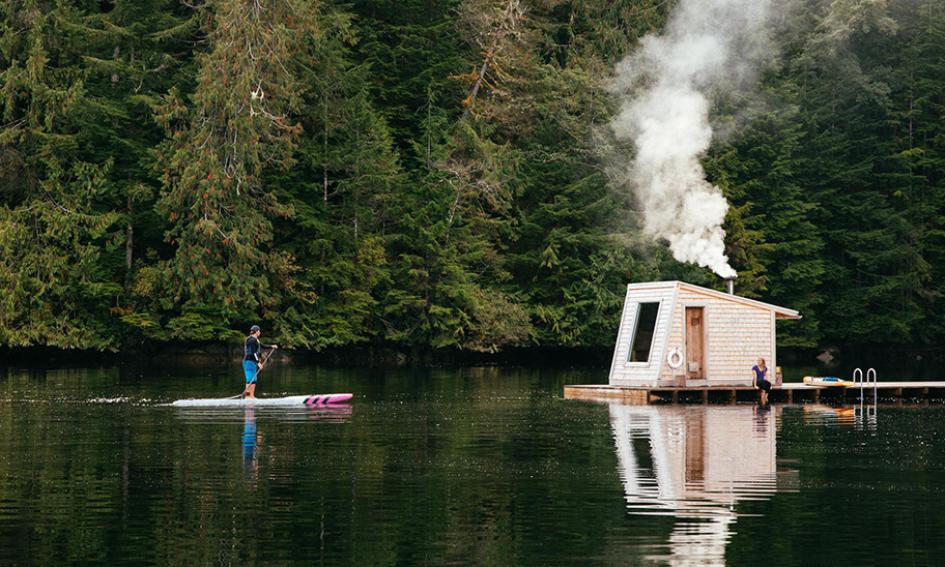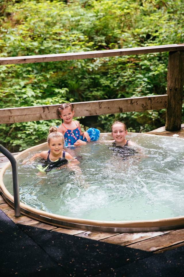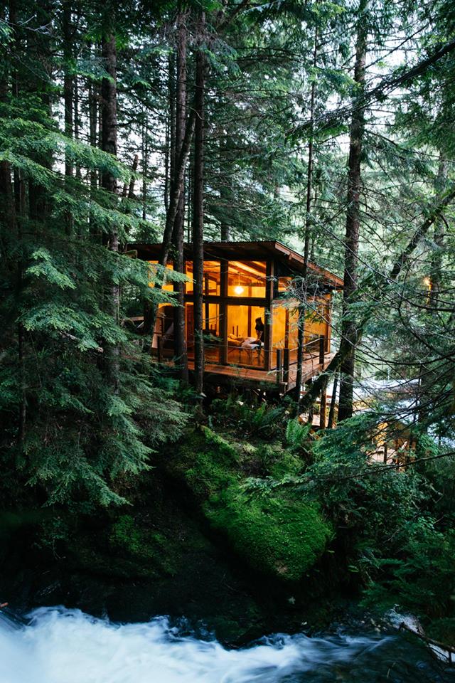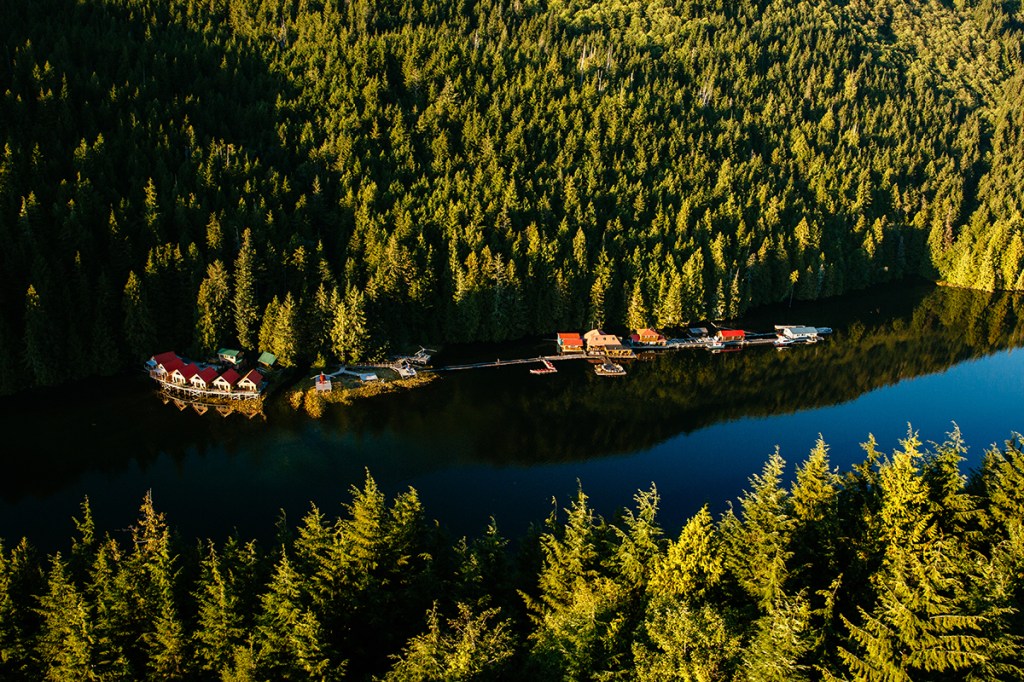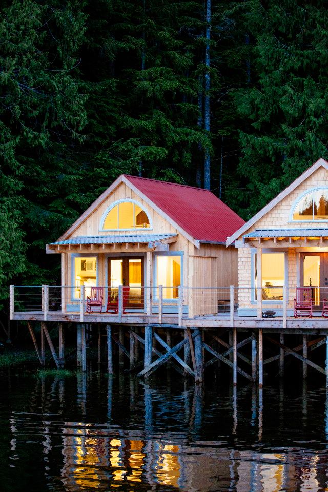 Nimmo Bay offers guests an endless array of activities, including bear watching, whale watching, hiking, fishing, glacier tours, beach-combing, hangouts over the bonfire, yoga classes, relaxing massage and kayaking. Guests stay in their own private cabins, feast on fresh coastal cuisine, and relax in the cedar hot tubs next to the cascading waterfall. The waterfall supplies the resort with green power and drinking water.