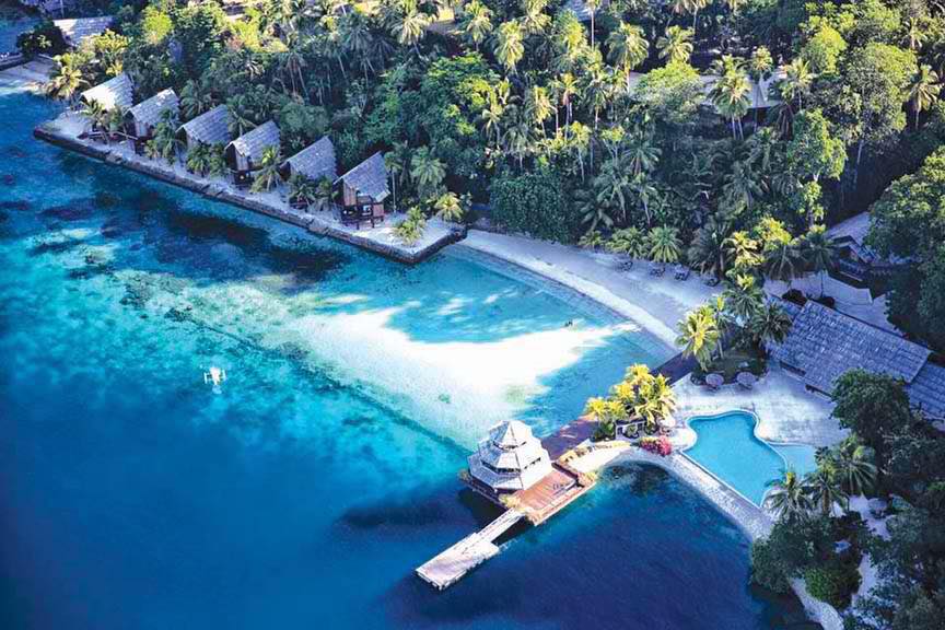 A destination of Pearl Farm Beach Resort in Samal Island on the Philippines was once a pearl farm where natural pearls were cultivated. The resort provides luxurious comfort in protected natural environment.
