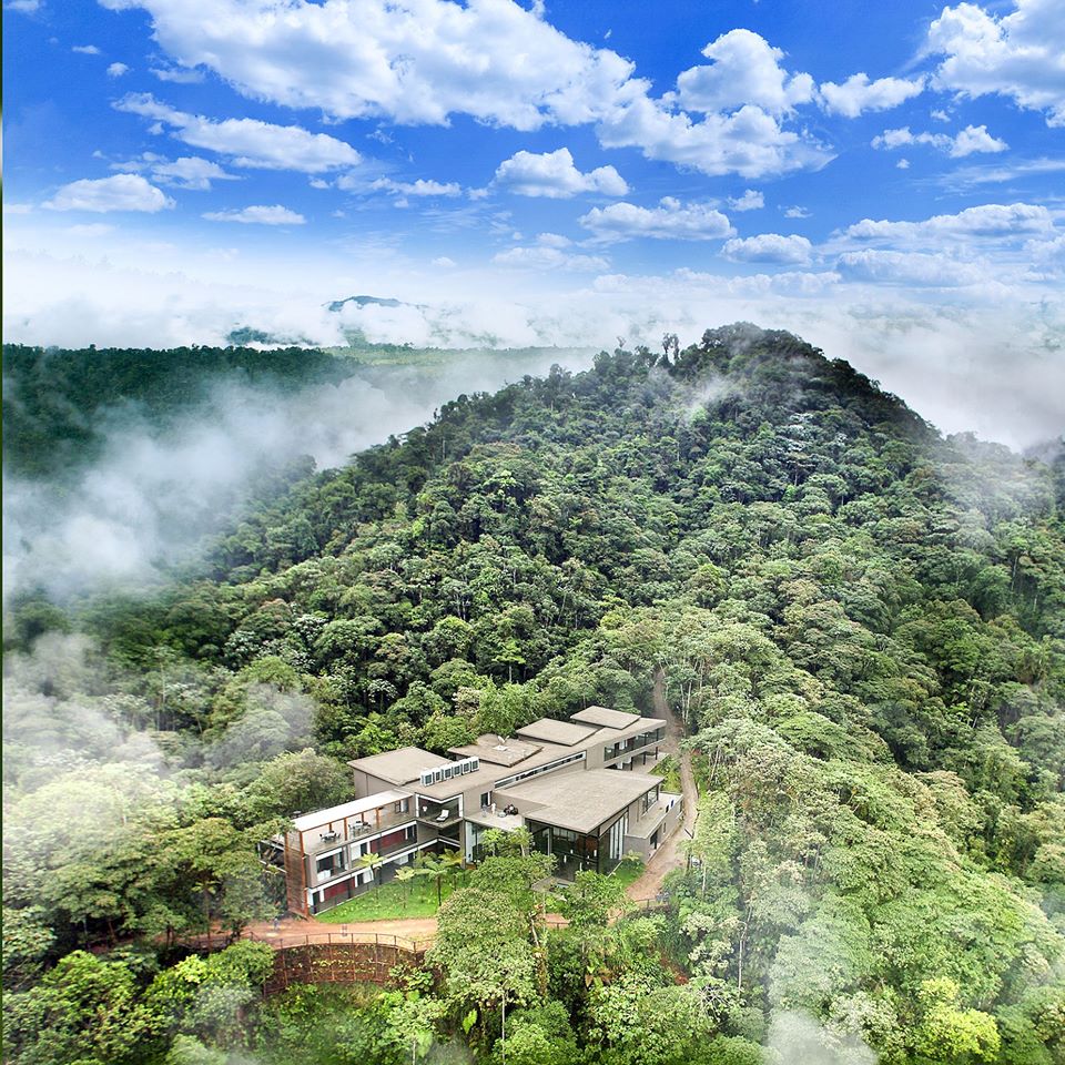Mashpi Lodge found its place in the undiscovered natural surroundings, around 100 km from the capital Quito. Its remote location in the forest features great views of nature, greenery and mountains.