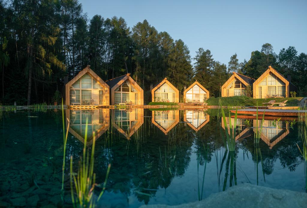 There are four different types of lodges in the resort, equipped with a flat-screen TV, a private bathroom, and a balcony with a mountain view. The chalets are made of natural materials, glass and black wood with wooden furnishing and natural fabrics and floor-to-ceiling windows, in order to be in harmony with nature and the environment.. There is a deep green lake in front of the lodges, blending perfectly into the landscape and offering a spectacular view on the Dolomites.