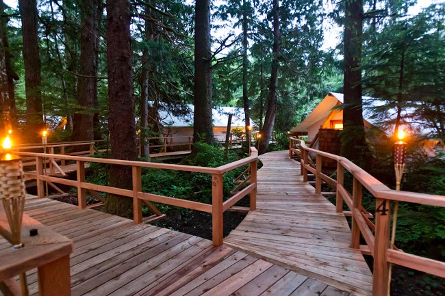 Situated on the wild west coast of Vancouver Island in Canada, Clayoquot Wilderness Resort is a 5 star Luxury Safari Style Tent Camp, offering a wide range of wilderness adventures and gourmet experiences. It is placed alongside the Bedwell River, surrounded by a rainforest and offers a true connection to nature.