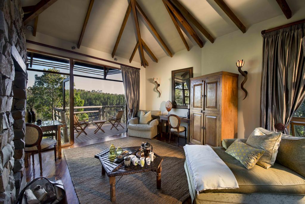 Tsala features a stone-masonry entrance flanked by water while the interior is filled with afro-baroque décor’s earthy colours, rich textures and handcrafted fittings inspired by the diverse cultures of Africa. There are six two – bedroomed villas, styled with sophistication and modern touches for pure luxury and ten private suites, tucked into the forest canopy. Both suites and villas are nestled high above the forest floor to complement the style and architecture of Tsala. A large lounge with a fireplace and dining area, and a forest – facing a private deck and infinity pool are suitable for family or romantic getaways.