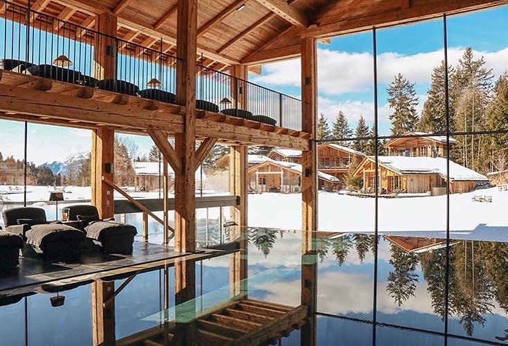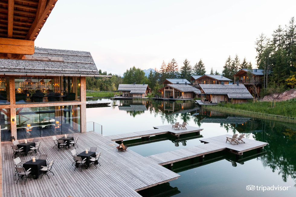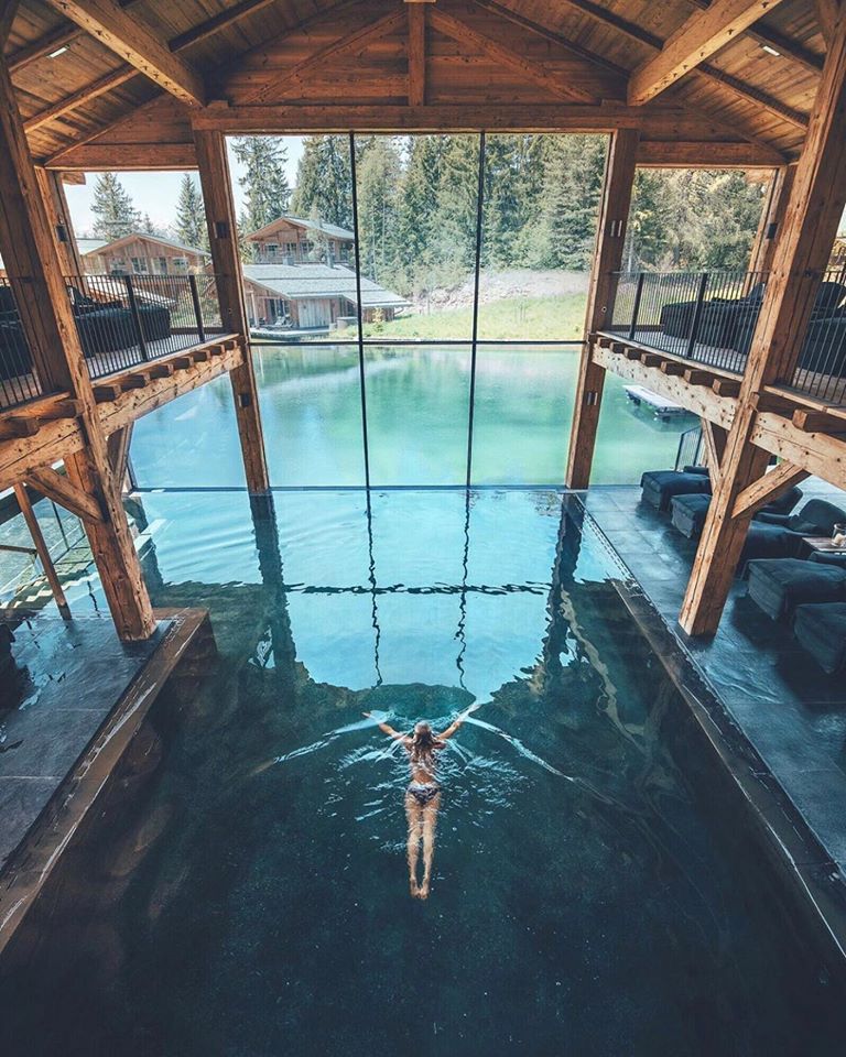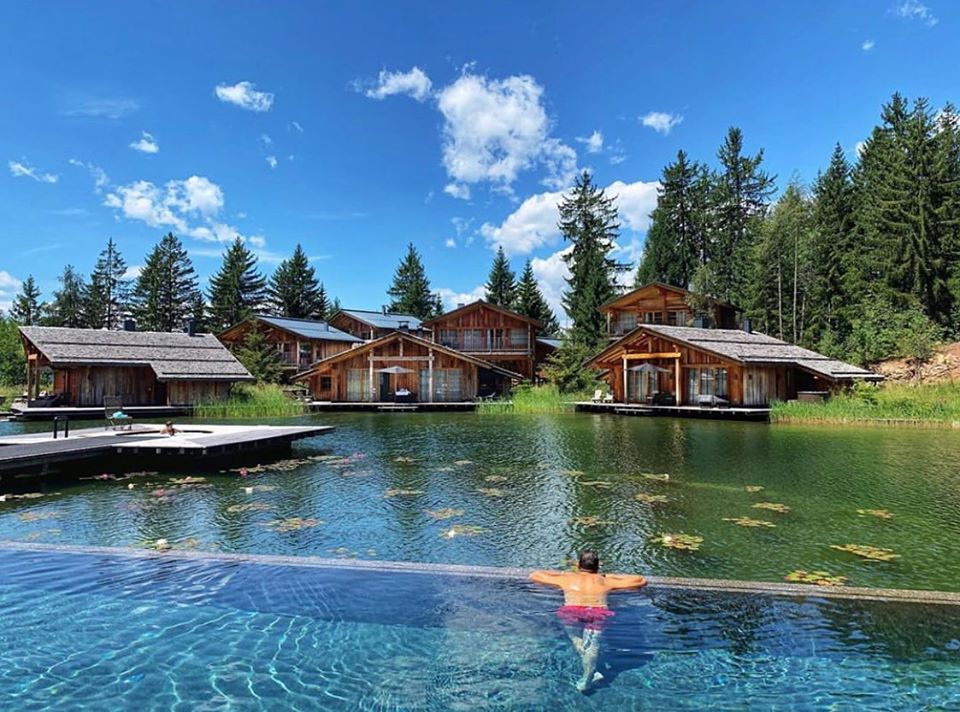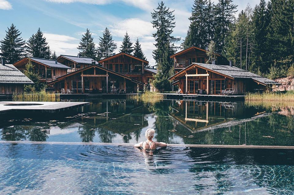 San Luis Retreat Hotel & Lodges is an idyllic hotel village with cosy chalets and treehouses situated in the Alpine area of north-east Italy, is surrounded by 40 hectares of forest. The cozy-looking wooden chalets seem to be perfectly integrated in the nature and local surroundings. There is a lake stretching through the resort, facing the houses.