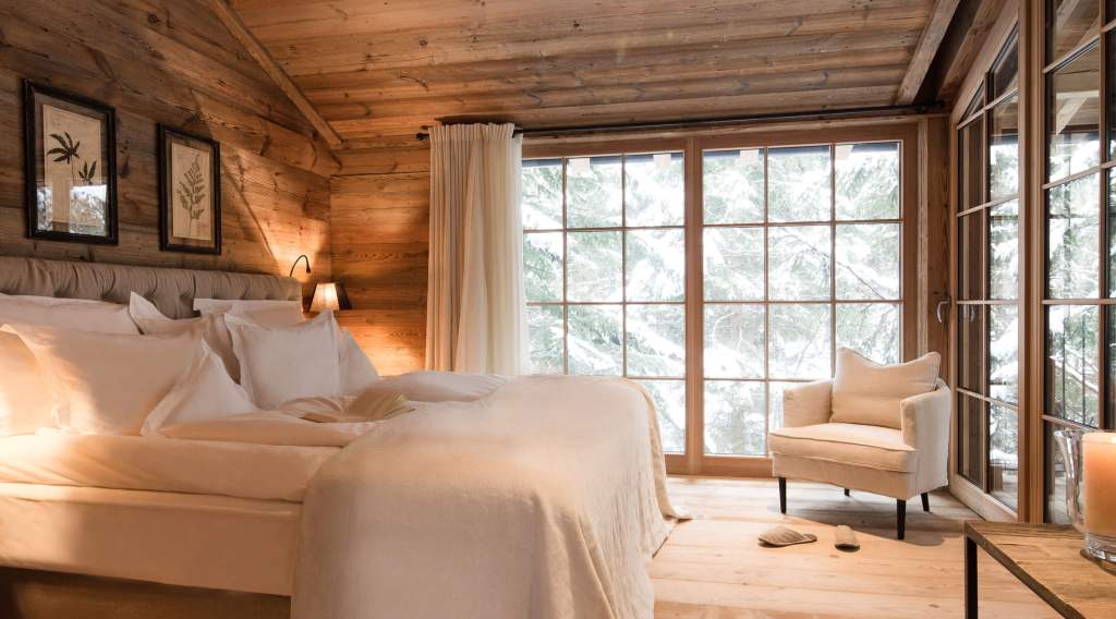 The resort is built of natural materials, traditionally treated ancient timber, special naturally-treated textiles and wide panoramic windows that let nature and light into the spaces.