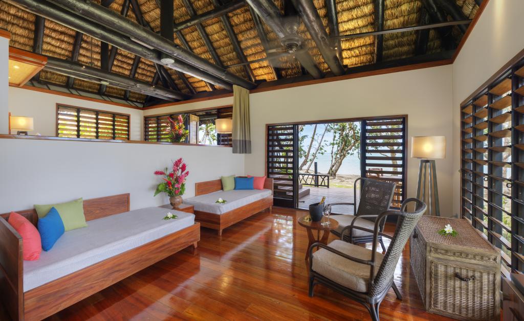 The resort’s accommodation is the combination of traditional Fijian architecture and luxurious holiday resort. There are 25 separate bures and villas made of natural local materials and with thatched roofs. The lodges include Garden View Bures, Oceanfront Bures, 2 Bedroom Bures, Point Reef and Honeymoon Bures. The spacious rooms offer stunning views of the resort gardens or crystal waters of the Pacific Ocean.